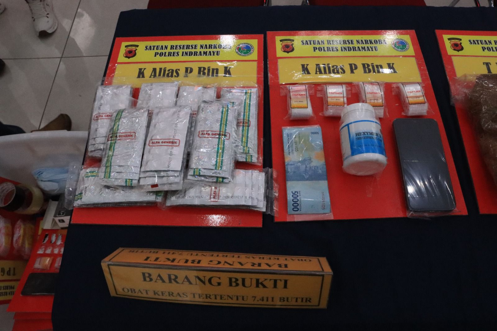 * Pil Keras Terlarang: Total 7.411 butir, mencakup Tramadol (5.533 butir), Hexymer (1.136 butir), Dextro (642 butir), dan Trihex (10 butir).